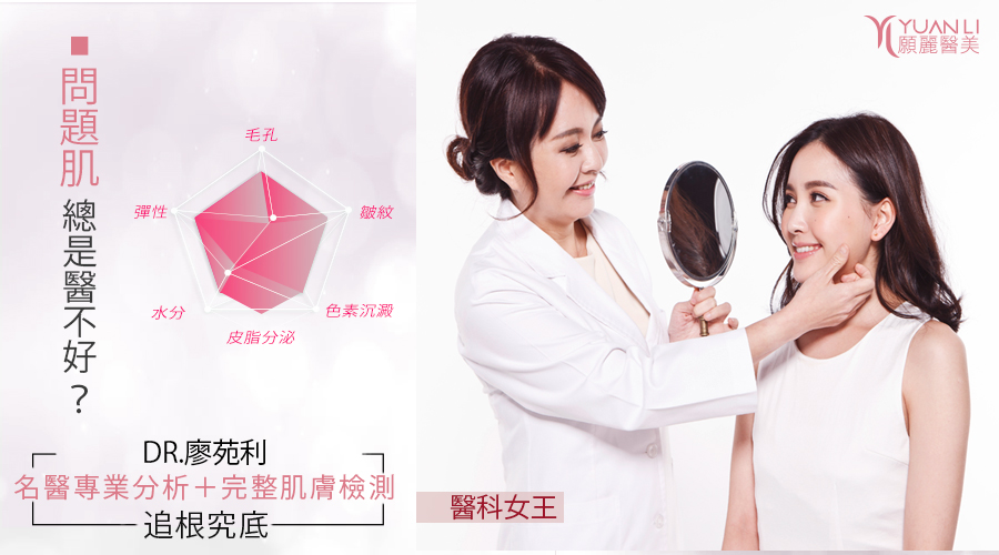 廖苑利醫師強調:盲目的選擇雷射、換膚等治療,是許多顧客會覺得治療無效的主因之一,在皮膚治療前,透過專業的肌膚檢測儀,才能看到自己皮膚最真實的毛孔出油異常點、痘痘痘疤、黑色素斑點與紋路的分部,除了可以增加療程的精確度,還可以分析皮膚治療後各方面的進步與改善。