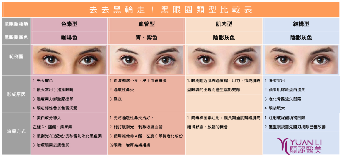 許多有 黑眼圈的民眾,即使每天都睡足8小時,昂貴眼霜也痛下心買來擦拭,但眼下惱人黑青依然存在,不禁讓人疑問,難道黑眼圈真的沒有救嗎?願麗醫美廖苑利醫師表示,黑眼圈在門診中排前三名,許多患者深受其擾,但是只要分析出是何種類型的黑眼圈,就可以對症下藥,獲得改善。