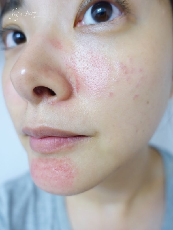 接下來幾天我就都乖乖戴口罩沒化妝,到了第六天已經幾乎看不出有紅的地方