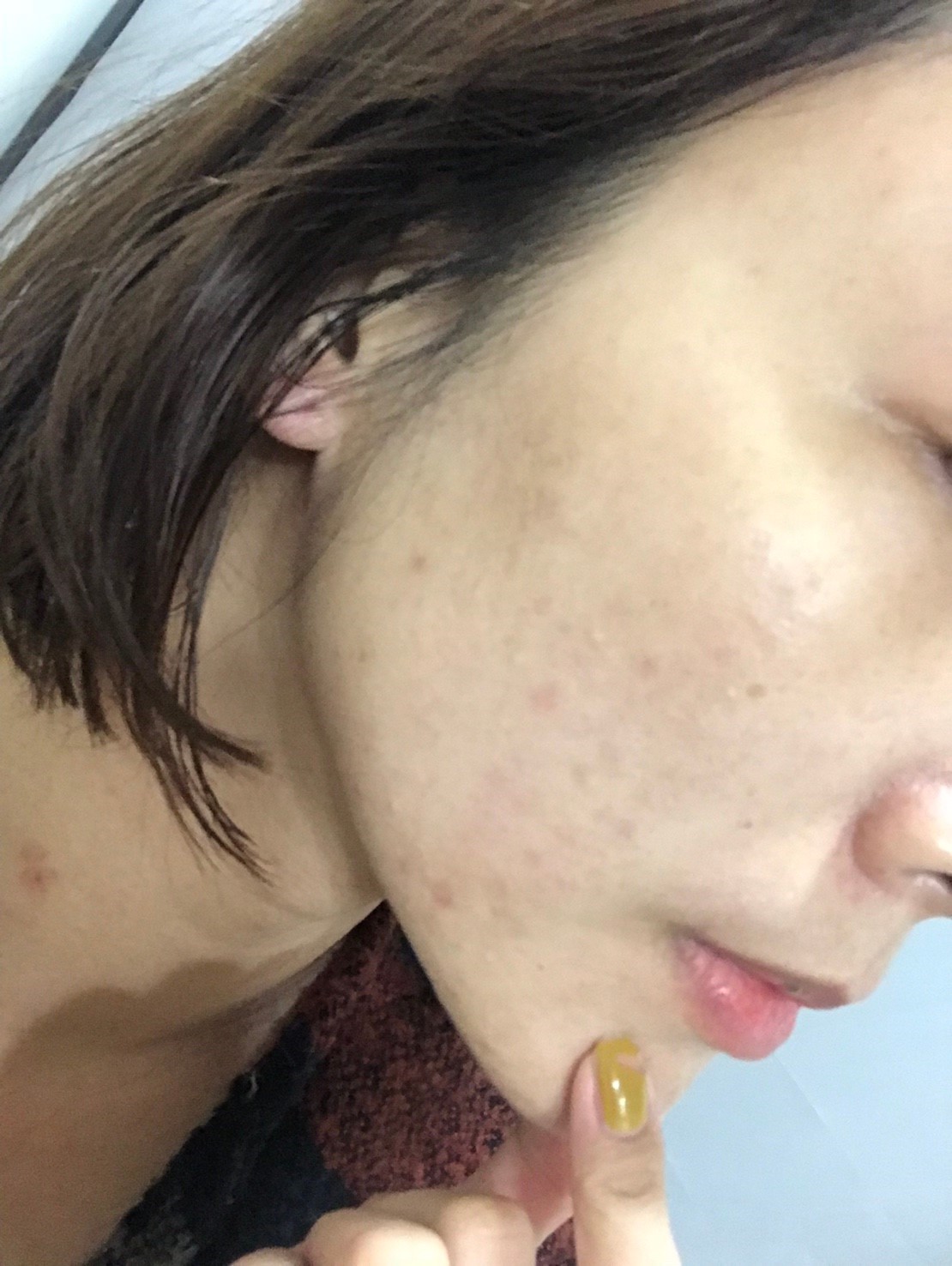 痘疤有稍微淡一點 整體膚色比較亮白沒這麼黃