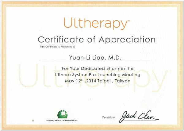 廖苑利醫師,經過儀器原廠認證更是Ulthera超音波拉皮(俗稱極線拉提)原廠指定的專任講師。在她的帶領之下麗思利欣醫美診所永遠為顧客把關 療程安全、專業技術及優質服務。
