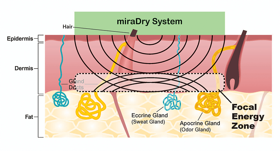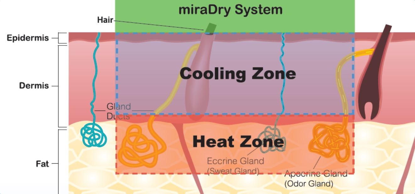 A.迅速、非侵入性的治療,經由系統準確控制微波能量到達汗腺密集分佈的皮膚組織目標,治療汗腺已達到療程目的。