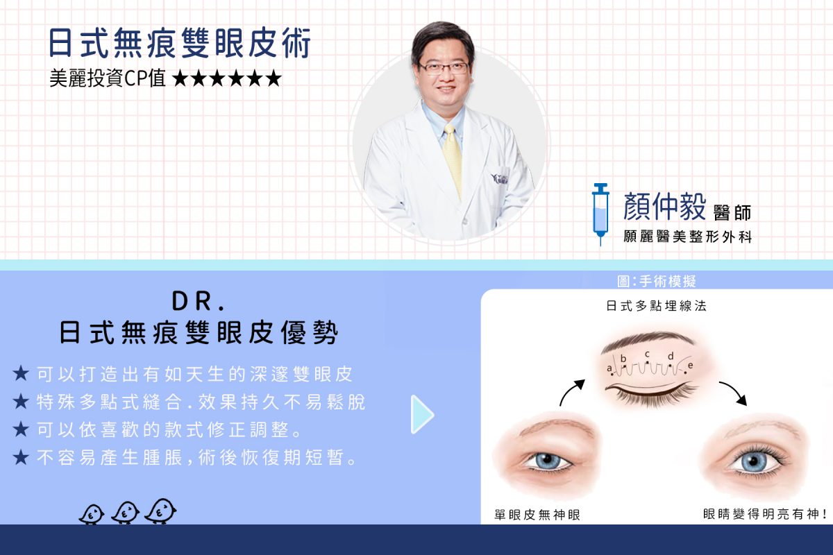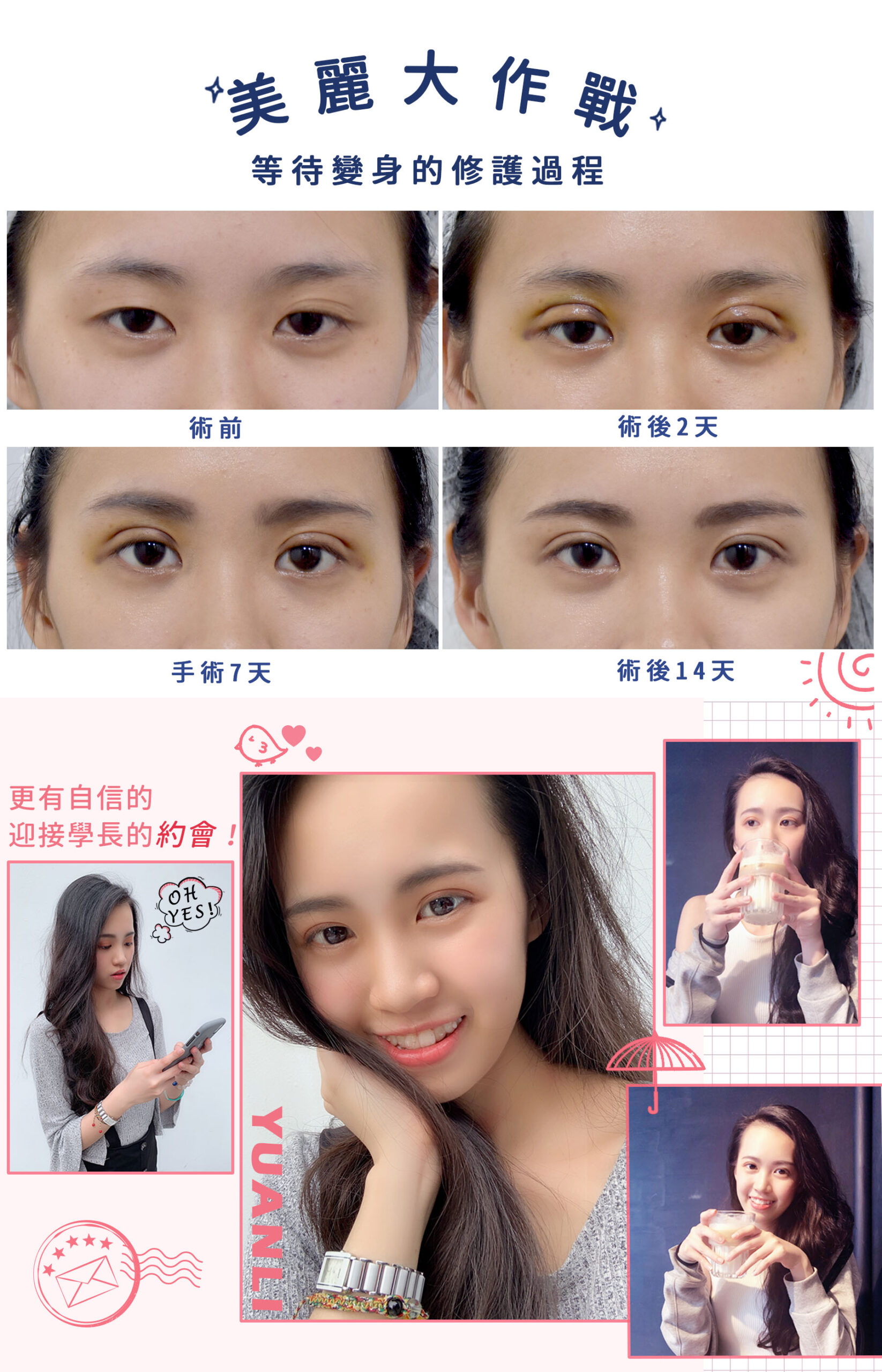 廖苑利醫師表示整形外科團隊術前的模擬最重要,了解自己的化妝生活習慣、接受度與自己的眼皮條件,與醫師溝通適合自己的手術方式與眼皮寬度,術後成果將能接近模擬的眼皮形狀。願麗醫美集團根據顧客的眼型、眼皮情況,配合五官特徵與比例,設計適合顧客的雙眼皮摺痕位置。手術過程採局部麻醉,由專業的整形外科醫師進行手術。