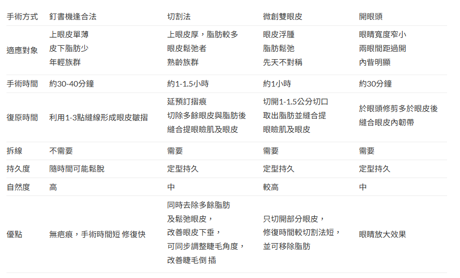 Q.要如何選擇釘書針雙眼皮、割雙眼皮還是微創雙眼皮?