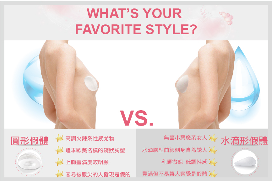 果凍矽膠的形狀有圓碗形和水滴形兩種,醫師會視客戶的胸形、條件和需求,綜合評估後選擇最適合的假體,量身打造完美胸形。兩種形狀都可以讓罩杯升級跳,觸感Q彈、外觀自然,視覺上相當接近天生乳房,幾乎讓人分不清楚胸部是真的還是假的。