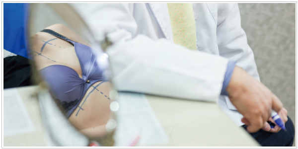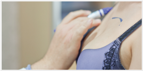 醫師依患者需求與乳房組織評估後,建議適合之義乳材質,並模擬術後乳房真實大小,並進行位置標記後進行手術。