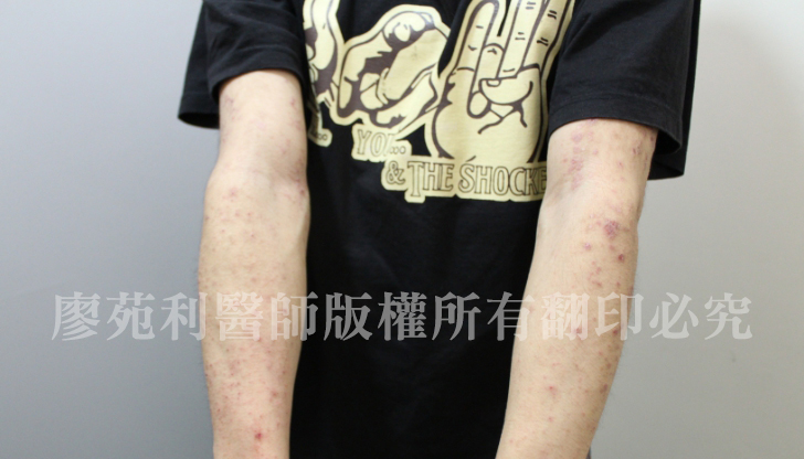 男子表示,從小皮膚就很不好,還常常睡覺睡到一半把家人叫起來,只為了幫忙抓癢,為了改善症狀,舉凡泥鰍、蛇湯、青蛙等偏方都嘗遍,但仍不見起色。開業皮膚科醫師廖苑利表示,有勇氣吃偏方卻不尋求專業皮膚科的協助,延誤治療時機不是明智之舉。