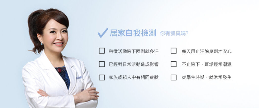 台灣氣候溫暖潮濕,特別是許多人一旦感到悶熱不適,腋下便經常出現濕濡一片,若是又散發陣陣異味,不僅自己感到尷尬,更是令旁人苦不堪言,多汗症及狐臭不光是季節性的問題,一到夏天就變得嚴重,不論是通勤族或是為了保持專業形象身著襯衫、西裝的上班族,高舉手臂同時露出一大片汗漬及異味,著實令人感到困擾,患有多汗、狐臭者,輕則影響生活,重則感到壓力、自卑,出現社交障礙,但是大部份的人對於腋下散發出的異味卻感到尷尬而難以啟齒,拜醫美治療科技演進,目前已有多種治療方式可以長久且有效的改善多汗症及狐臭。