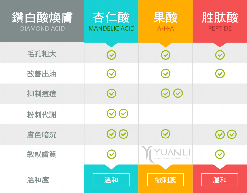 Q.願麗的鑽白酸煥膚有什麼不同之處?