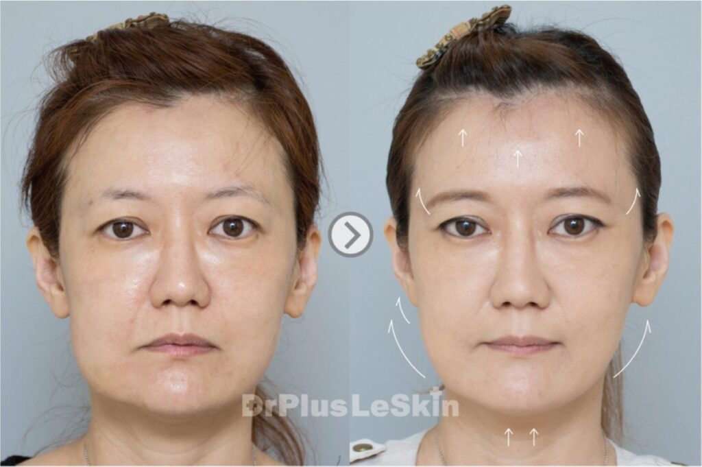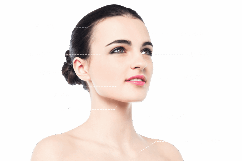 臉部改善肌膚老化:拉提下垂肌膚,刺激膠原新生收緊下顎鬆弛:法令紋 / 嘴角紋 / 木偶紋 / 雙下巴拉提下垂皮膚:額頭鬆弛 / 眉毛下垂 / 雙眼皮下垂 淡化肌膚皺紋:抬頭紋 / 眼周細紋 / 火雞脖子